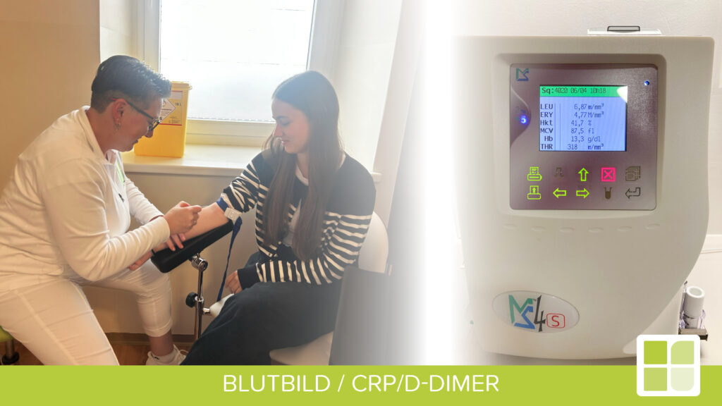 In unserer Ordination wird D-Dimer, CRP und das Blutbild bestimmt.